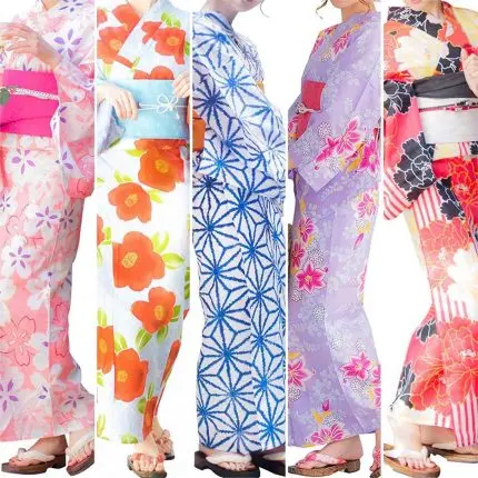 - This is a 3-piece set that consists of a yukata, waistband and wooden clogs.Do note that other accessories are not included.